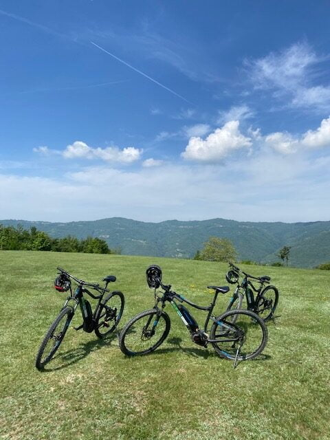 De boerderij is goed toegankelijk via een onverhard pad van 800 meter. Het terrein is 7 hectare groot en heeft hazelnoten, fruitbomen, een kleine wijngaard en een moestuin. De producten die we oogsten, gebruiken we uiteraard bij de maaltijden, inclusief onze eigen wijn.